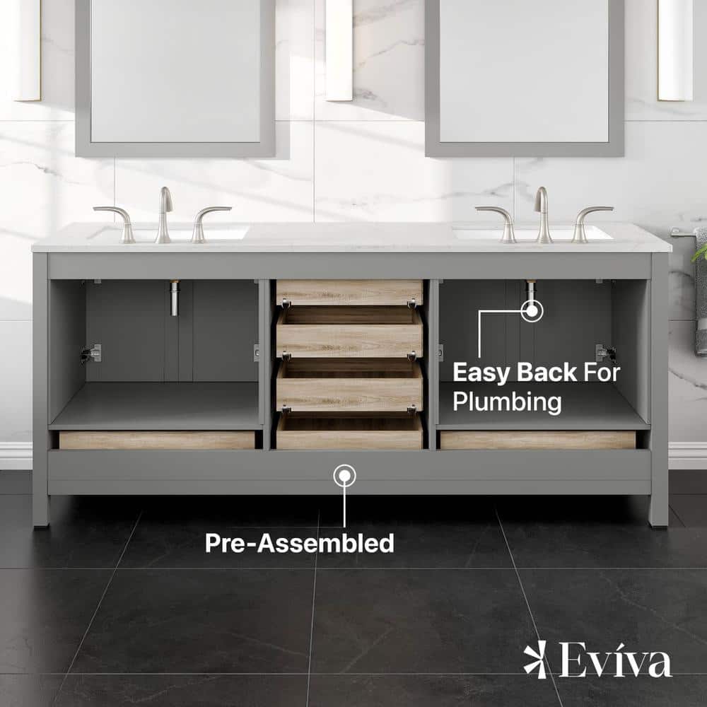 Transform your bathroom into a luxurious retreat with the Eviva Aberdeen Double Vanity—order now to redefine elegance and functionality in your home.