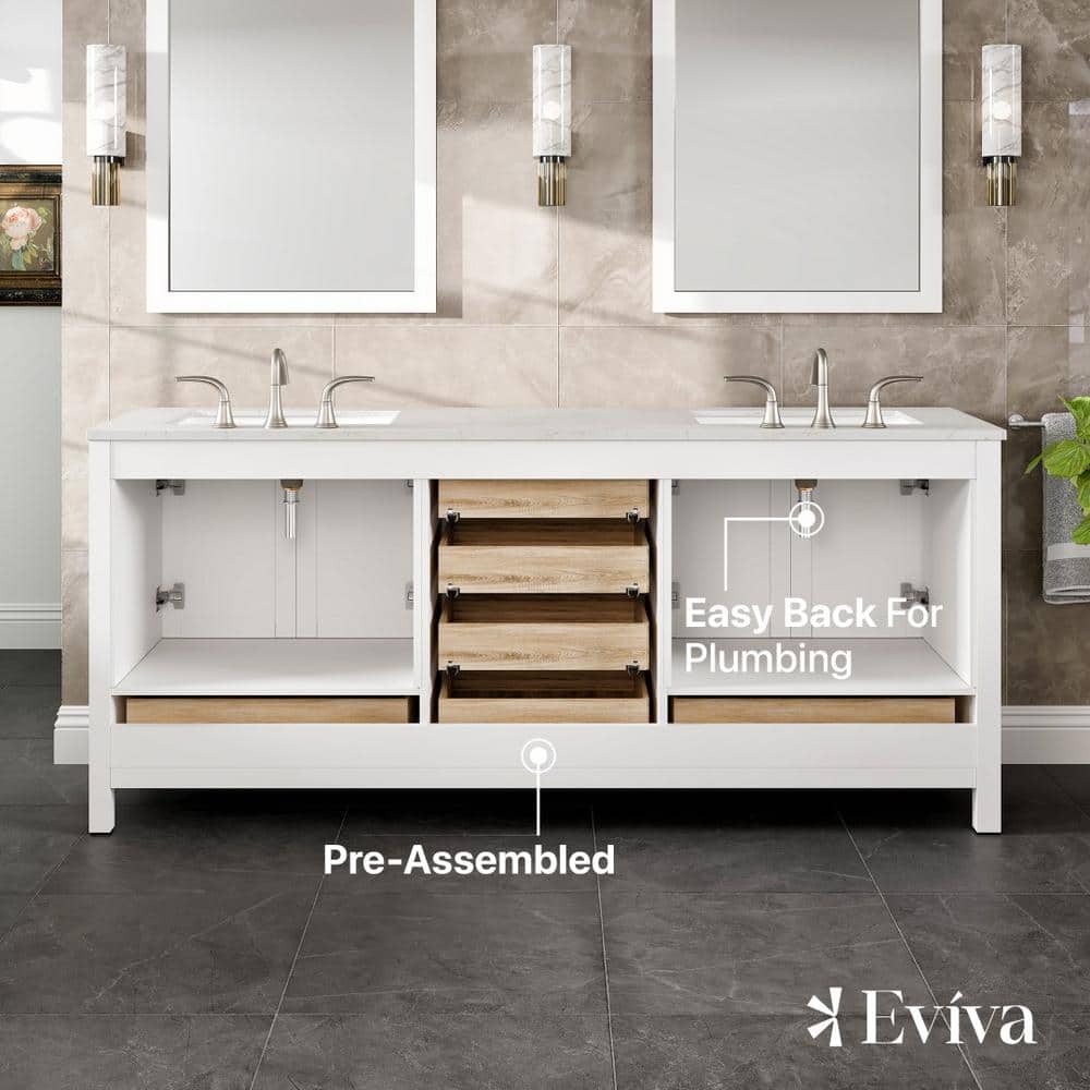 Eviva Aberdeen 78 in. W x 22 in. D x 34 in. H Double Bath Vanity in White with Carrara Quartz Top with White Sinks