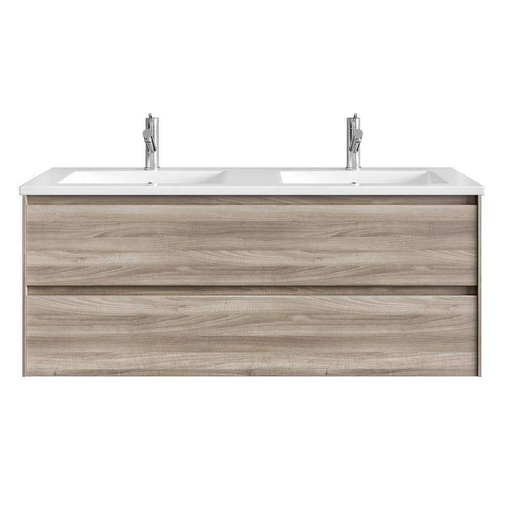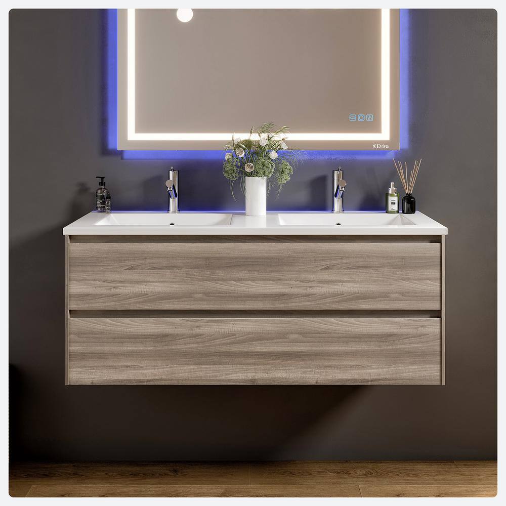 Eviva Bloom 48 in. W x 18 in. D x 34 in. H Double Sink Floating Bath Vanity in Pine Gray with White Porcelain Top
