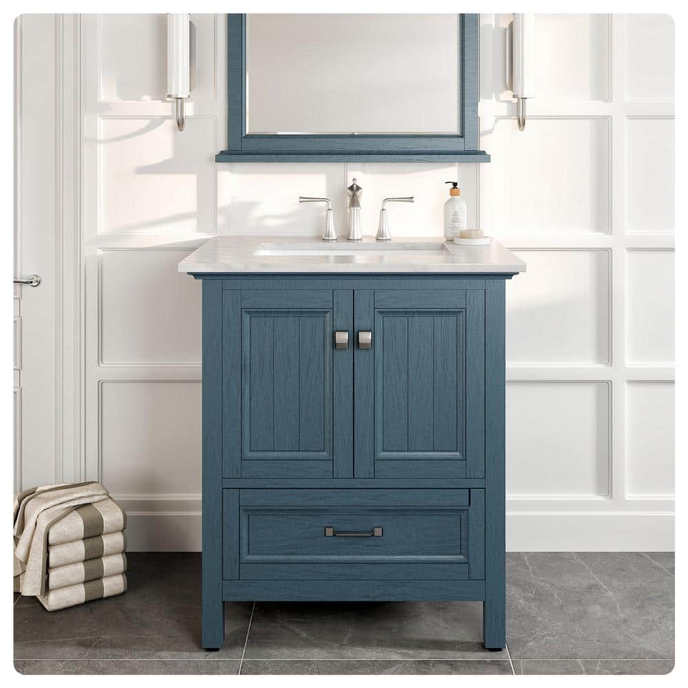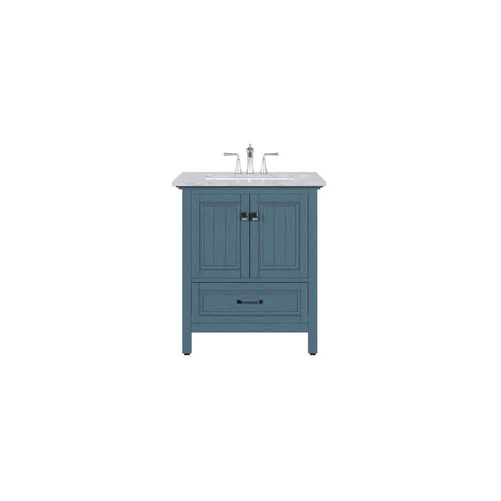 Eviva Britney 30 in. W x 22 in. D x 34 in. H Single Freestanding Bathroom Vanity in Ash Blue with White Carrara Marble Top