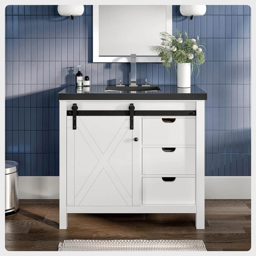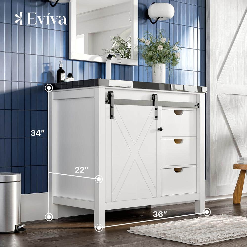 Regular price $1,294.97Eviva Dallas 36 in. W x 22 in. D x 34 in. H Bath Vanity in White with Black Granite Top with Black Sink