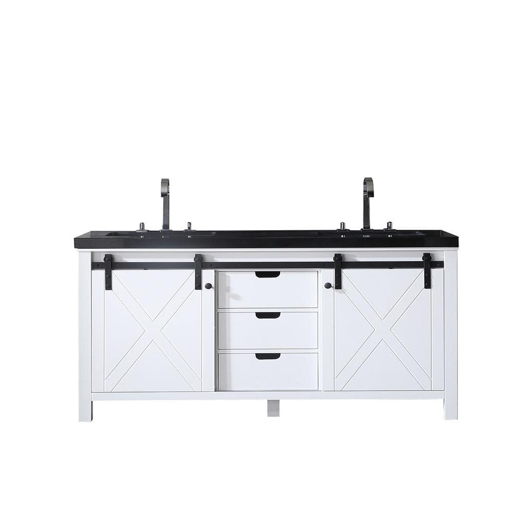 Eviva Dallas 72 in. W x 22 in. D x 34 in. H Double Bath Vanity in White with Black Granite Top with Black Sinks