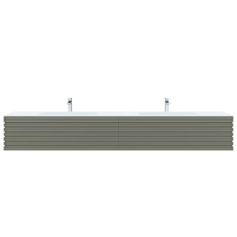 Eviva Dream 78 in. W x 20 in. D x 14 in. H Double Sinks Floating Bath Vanity in Smog Grey with White Solid Surface Top