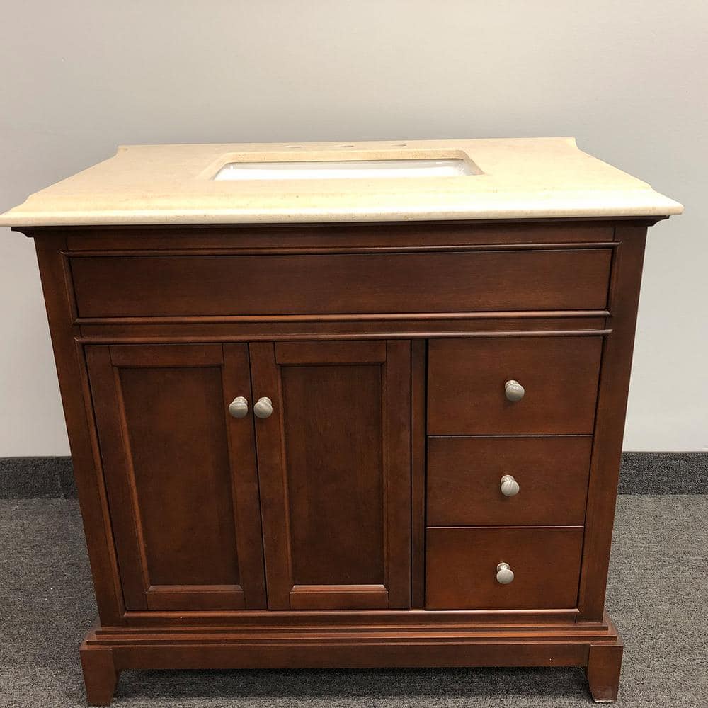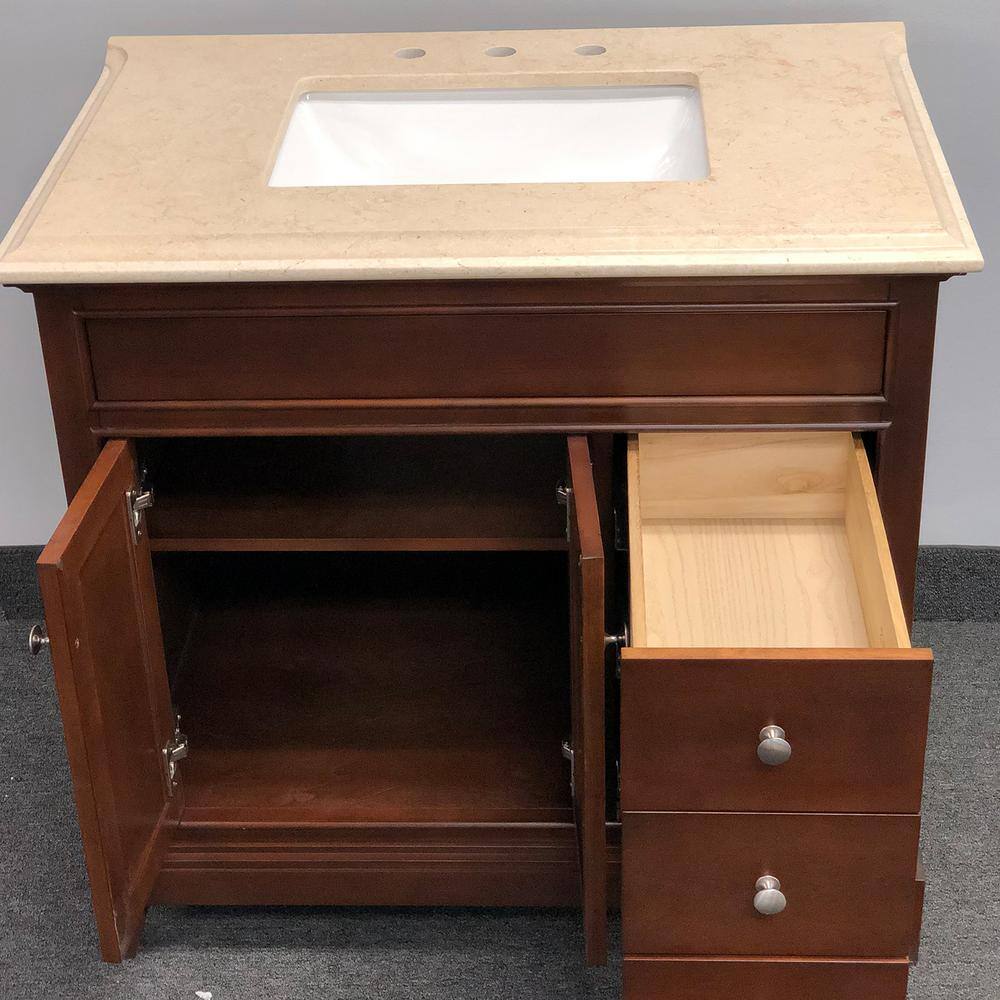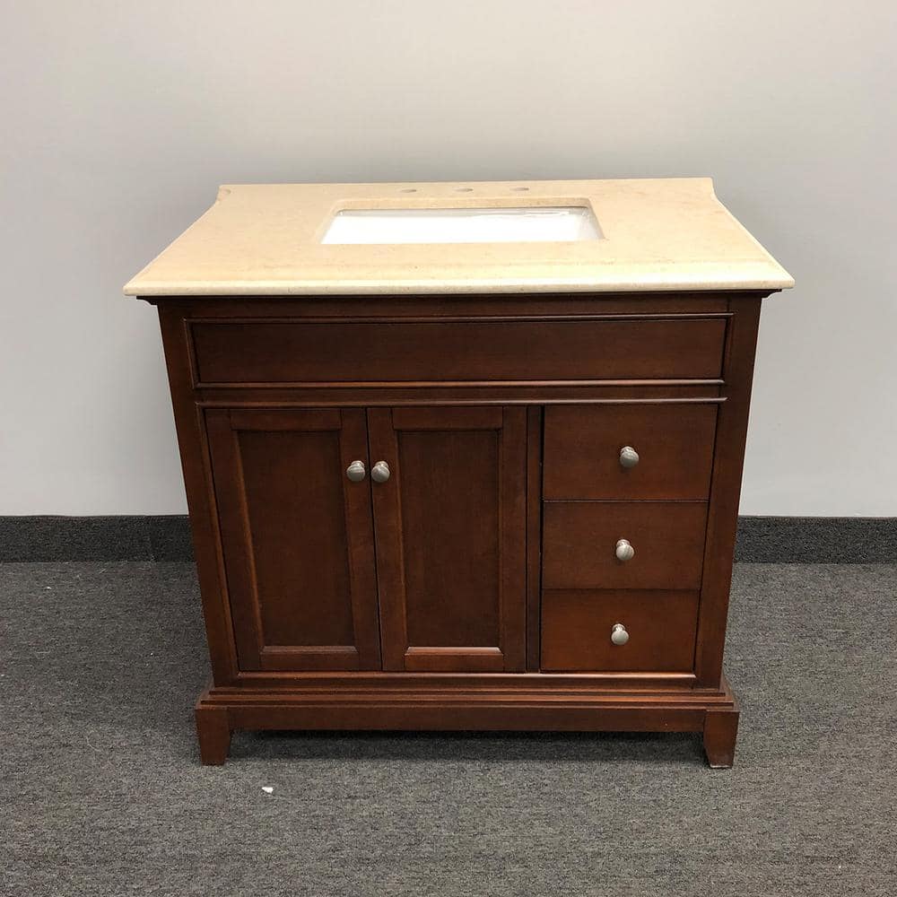 Eviva Elite Princeton 36 in. W x 23.5 in. D x 33.75 in. H Freestanding Single Bath Vanity in Teak with Crema Marfil Marble Top