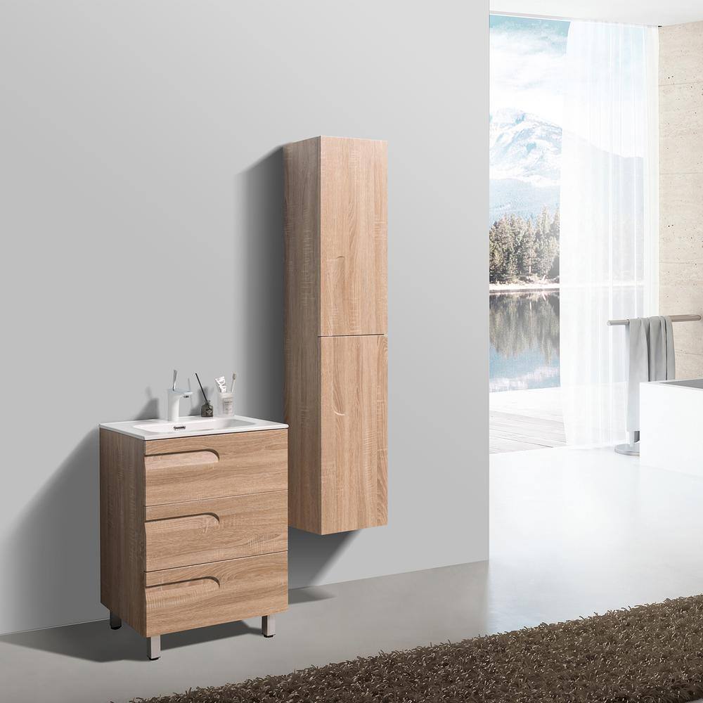 The Eviva Joy Vanity transforms any bathroom into a refined sanctuary of style and function. With its sharp, contemporary lines and warm maple finish, this vanity offers a unique blend of tradition and modernity. The integrated porcelain sink is a standout feature, providing both elegance and practicality. Style it with a sleek, modern faucet and minimalistic mirrors to create a luxurious atmosphere that echoes sophistication. An essential piece that marries form with function, this vanity is a must-have for those seeking understated opulence.