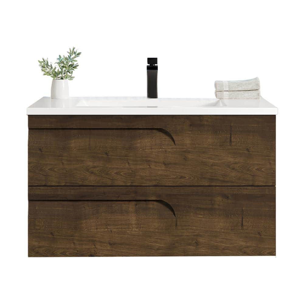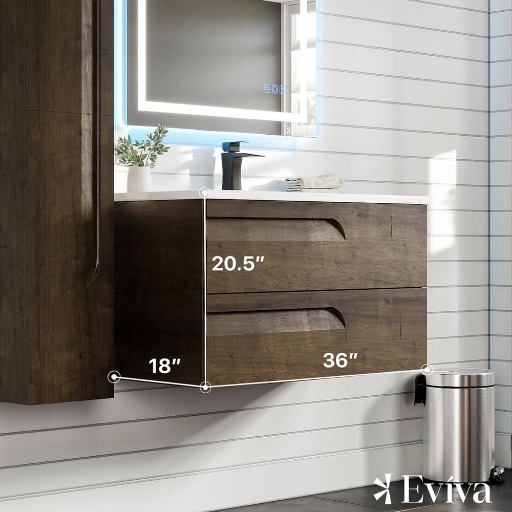Eviva Joyous 36 in. W x 18 in. D x 22.5 in. H Floating Bath Vanity in Rosewood with White Porcelain Top