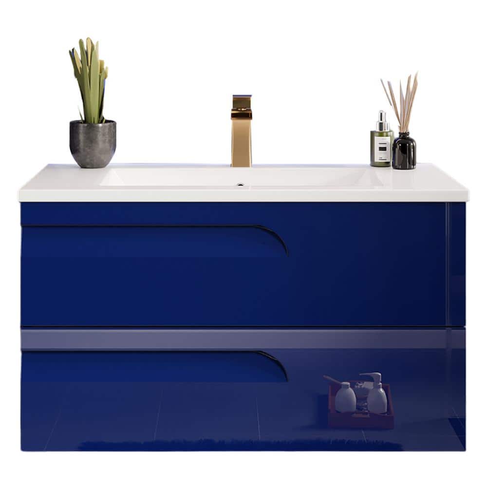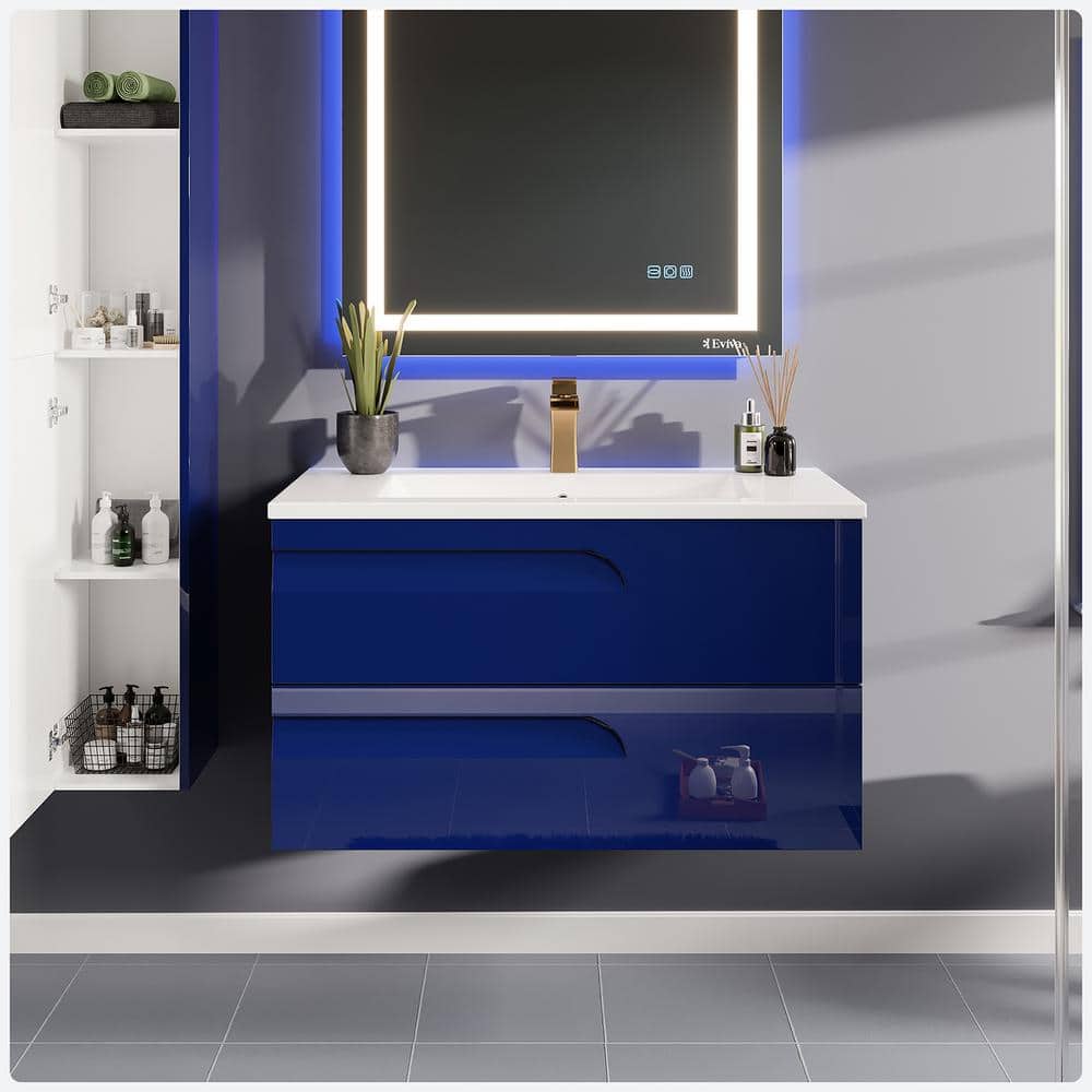 In the world of high-design bathrooms, the Eviva Joyous Floating Bath Vanity serves as a statement piece, evoking tranquility and sophistication with its blue and white palette. Its clean lines and wall-mounted design effortlessly create the illusion of space, making small or grand bathrooms feel airy and expansive. Picture it beneath ambient lighting, paired with brass fixtures to highlight its contemporary charm. Transform your daily routine into a lavish experience with this centerpiece of modern luxury.