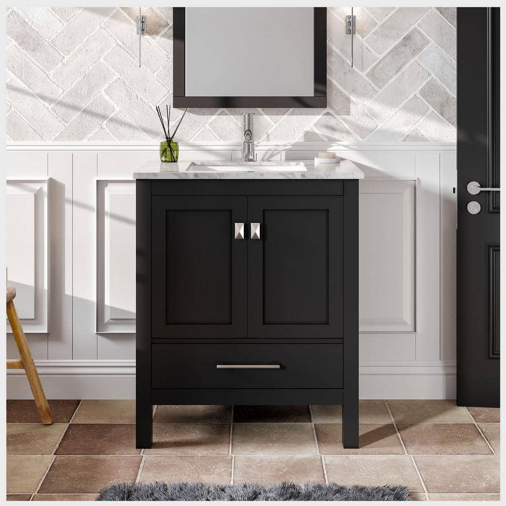 Eviva London 30 in. W x 18 in. D x 34 in. H Bathroom Vanity in Espresso with White Carrara Marble Top with White Sink