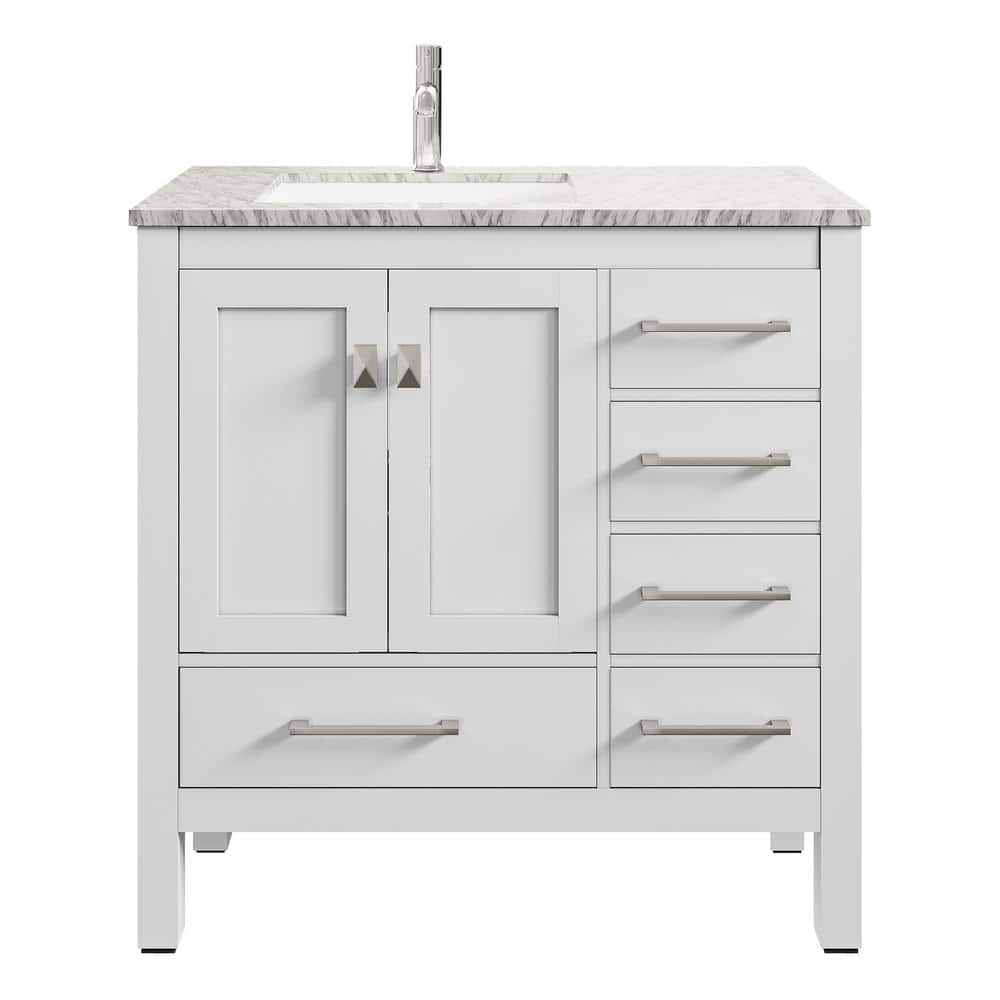 Eviva London 38 in. W x 18 in. D x 34 in. H Bathroom Vanity in White with White Carrara Marble Top with White Sink