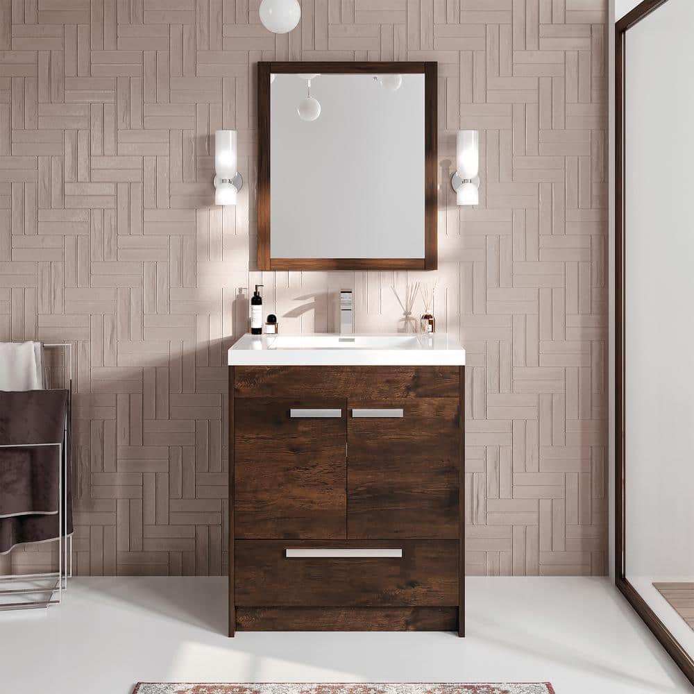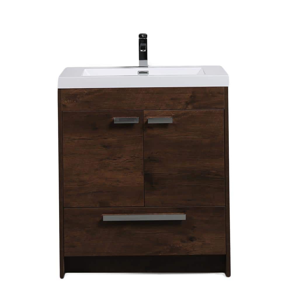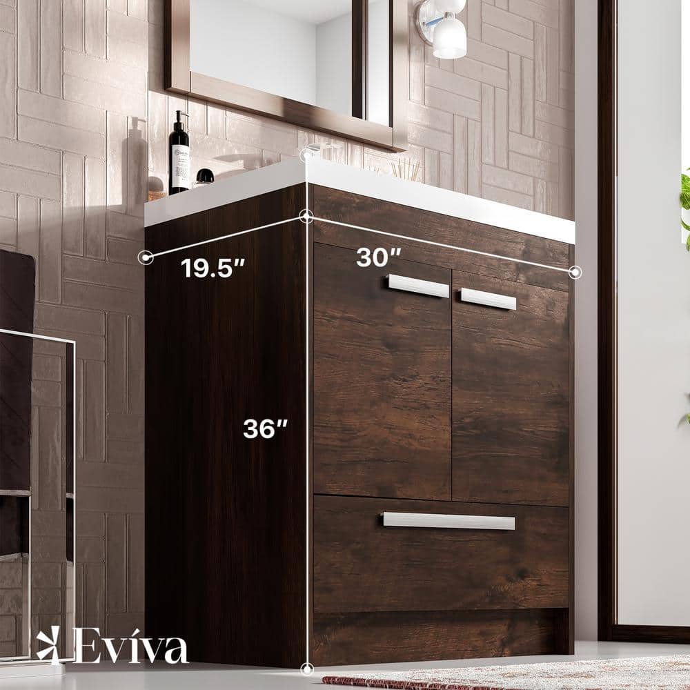 Eviva Lugano 30 in. W x 19 in. D x 36 in. H Single Bath Vanity in Rosewood with White Acrylic Top with White Integrated Sink