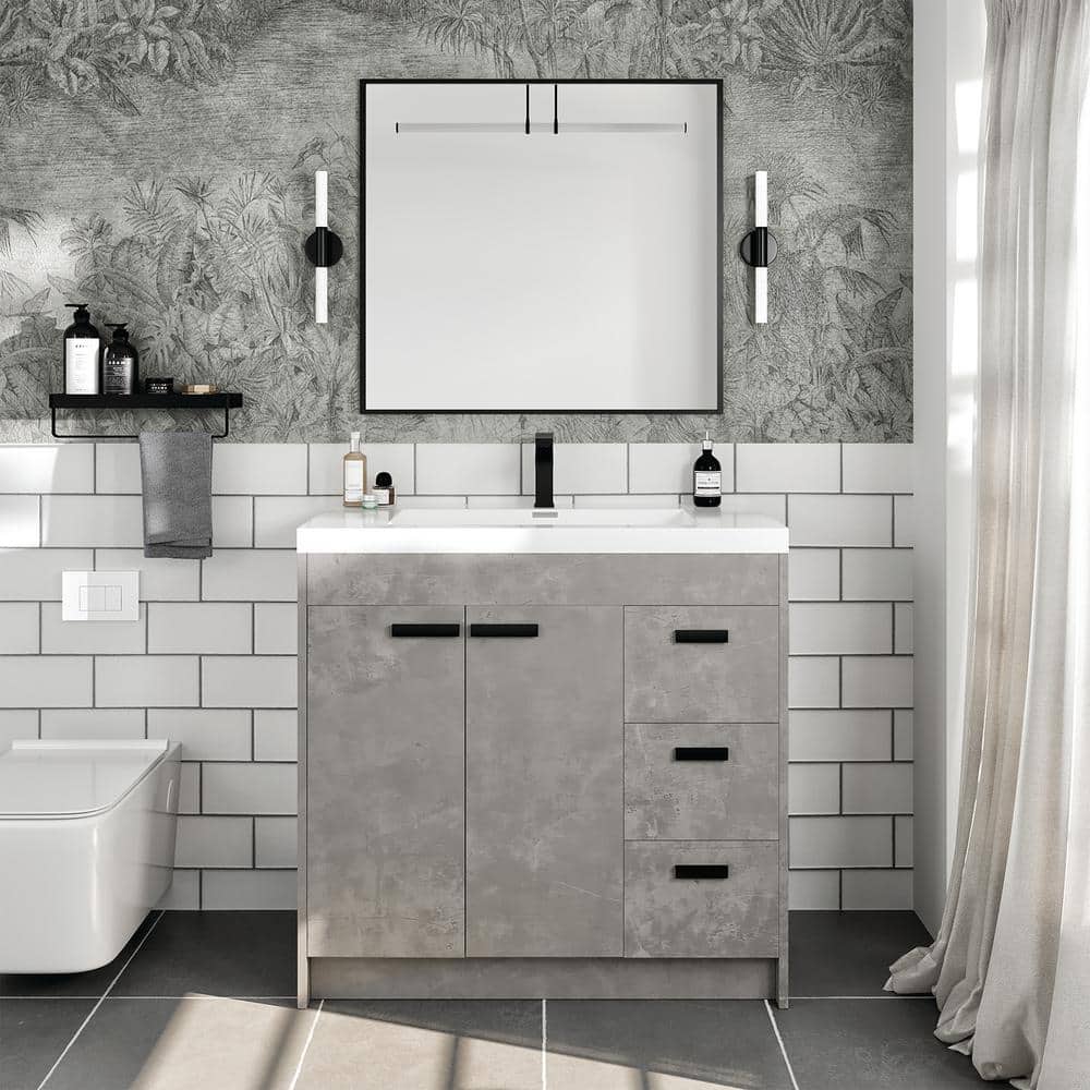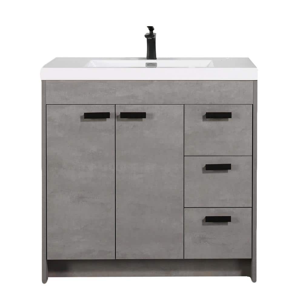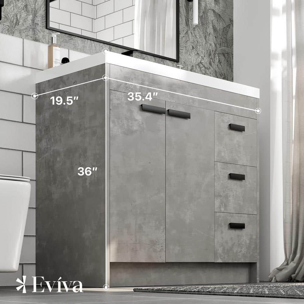Eviva Lugano 36 in. W x 19 in. D x 36 in. H Single Bath Vanity in Cement Gray W/ White Acrylic Top with White Integrated Sink