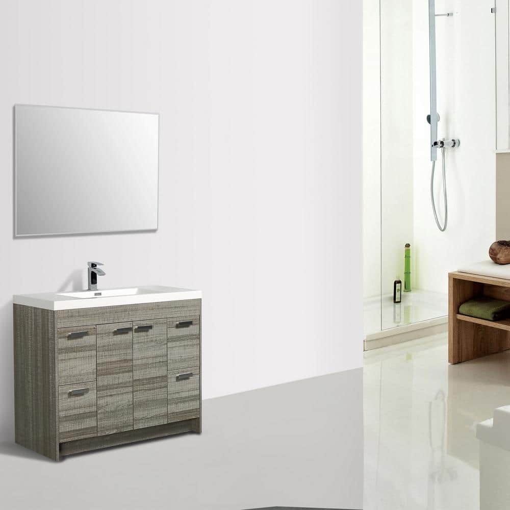Eviva Lugano 42 in. W x 19 in. D x 36 in. H Single Bath Vanity in Ash with White Acrylic Top and White Integrated Sink
