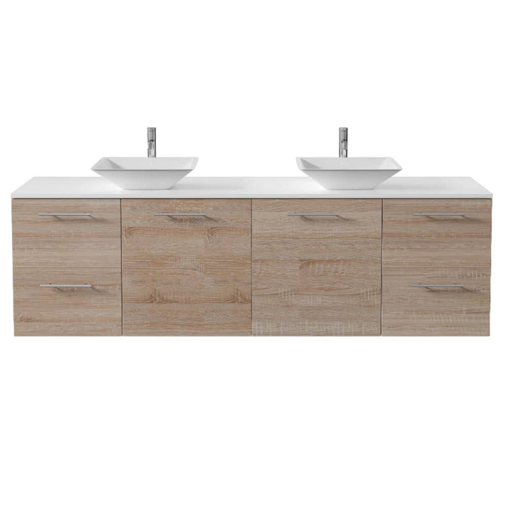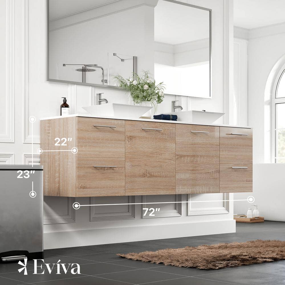Eviva Luxy 72 in. W x 20 in. D x 23 in. H Floating Bath Vanity in White Oak with White Tempered Glass Top