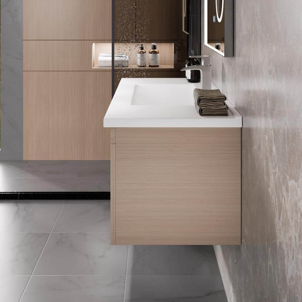 • Space Efficient: Wall-mount installation saves floor space and provides a modern, airy aesthetic.