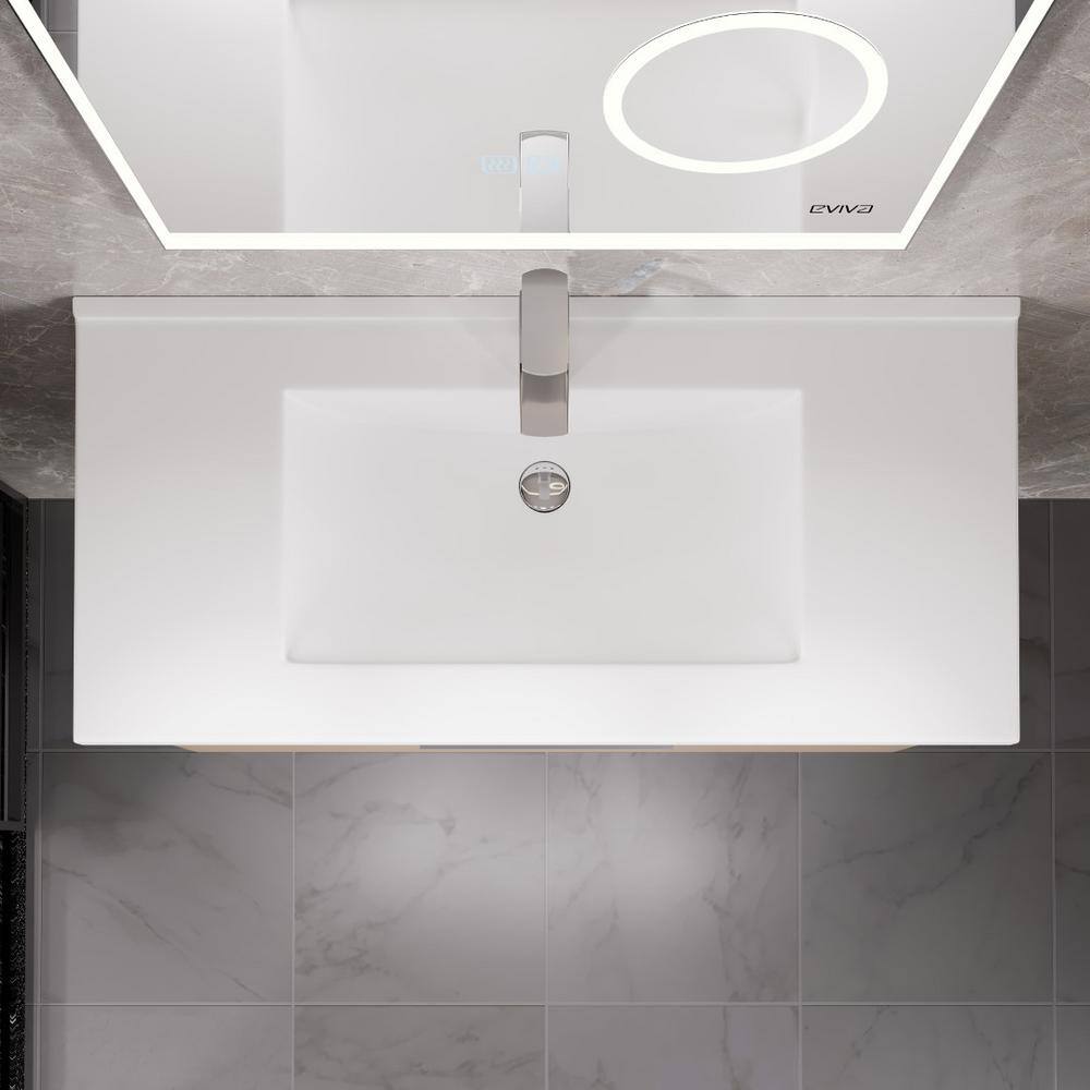 The Eviva Orleans Wall-Mount Bath Vanity combines Italian craftsmanship with modern design, featuring a Light Oak finish and a sleek white porcelain top. This exquisite single-sink vanity includes a spacious, soft-closing drawer and arrives fully assembled for effortless installation.