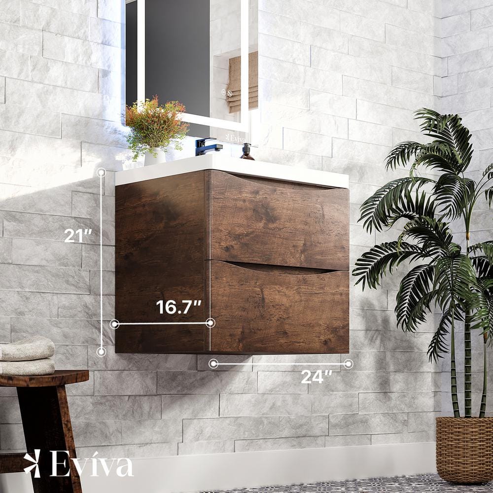 Eviva Smiley 24 in. W x 17 in. D x 21 in. H Floating Bath Vanity in Rosewood with White Acrylic Top