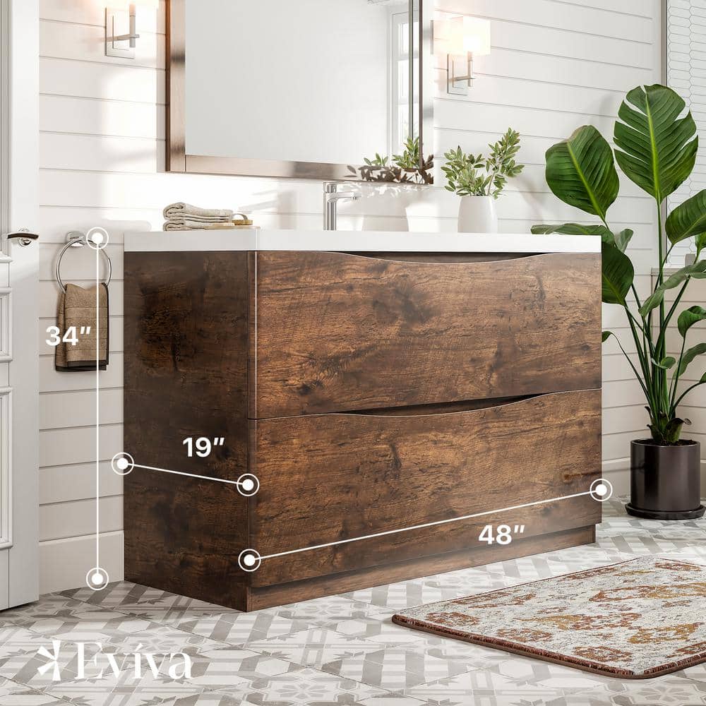 Eviva Smiley 48 in. W x 19 in. D x 33.5 in. H Freestanding Bath Vanity in Rosewood with White Porcelain Top