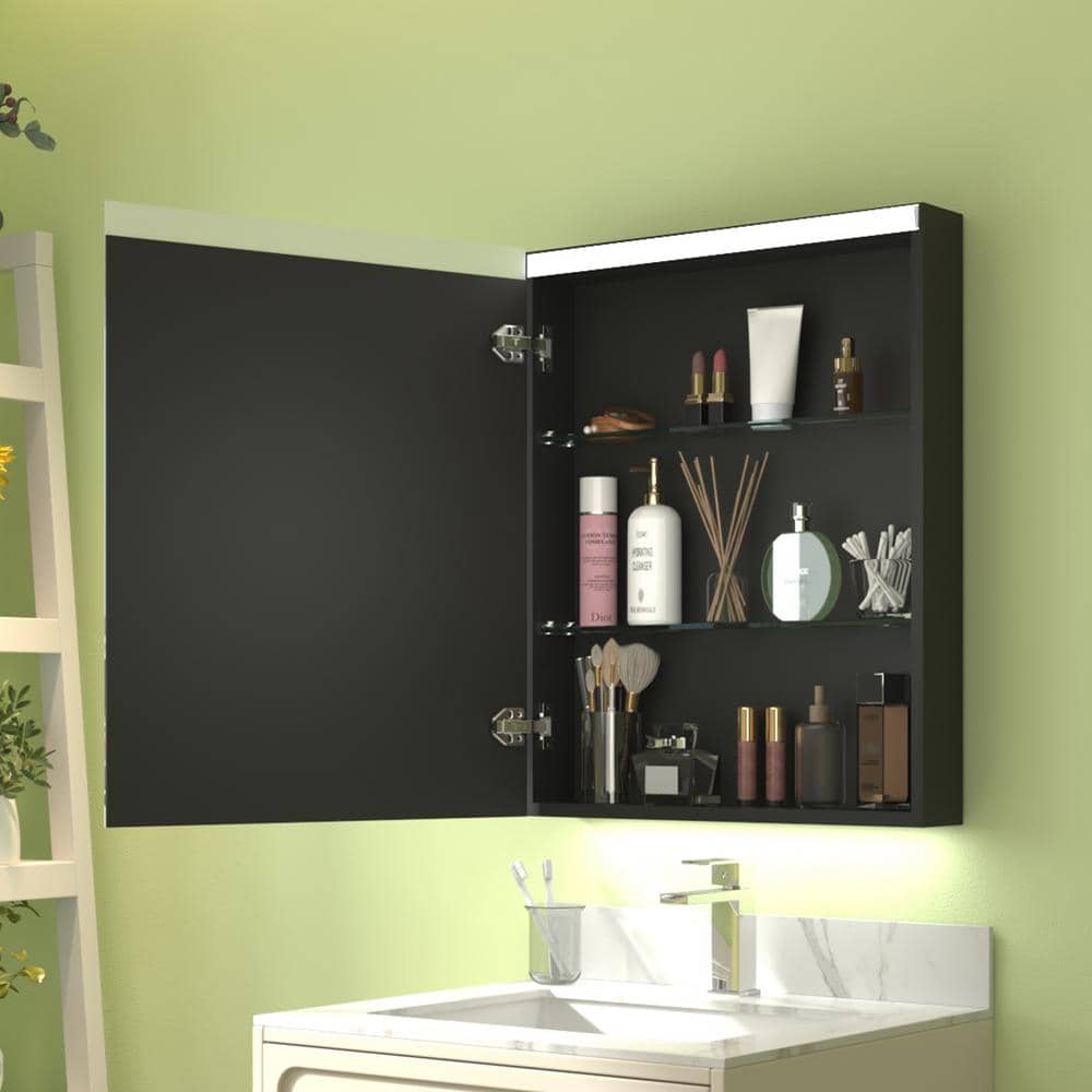 Enhance your bathroom's functionality and style with the ExBrite 24x30" LED Medicine Cabinet. This sleek aluminum cabinet features an integrated LED light and adjustable glass shelves, making it an elegant solution for organizing toiletries. With easy surface mount installation, it brings contemporary sophistication and practical lighting to any space.