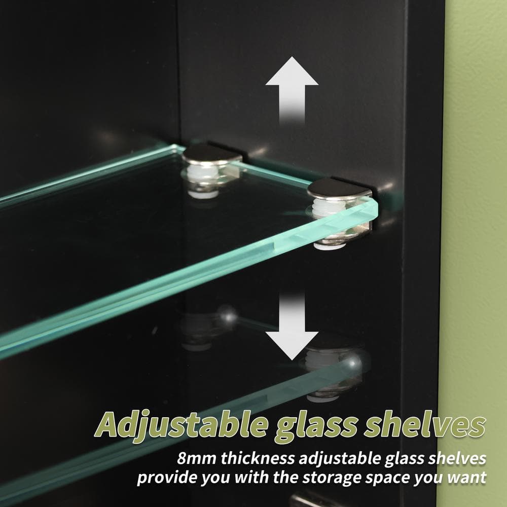 Adjustable Storage: Two 8mm thick adjustable glass shelves for customizable storage