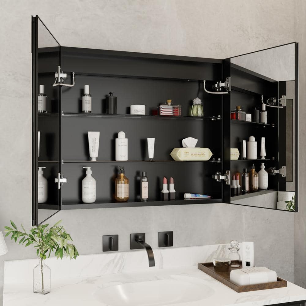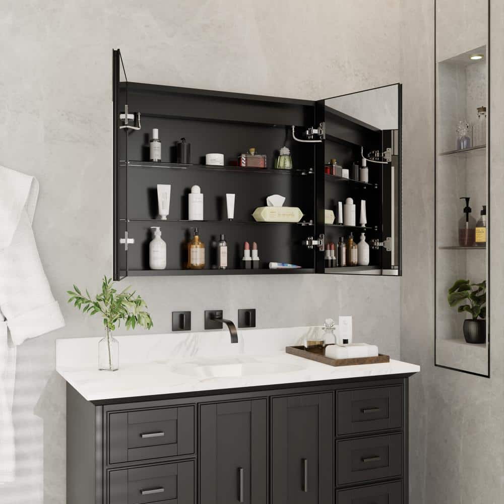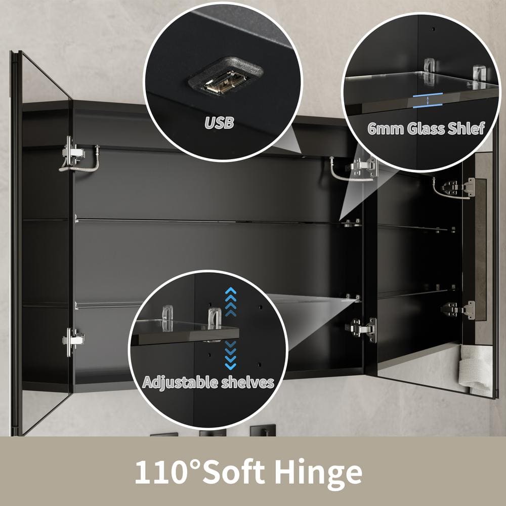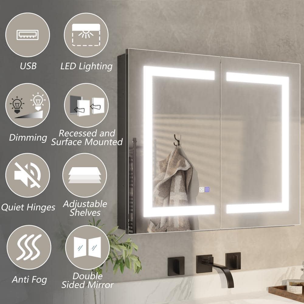 Functionality: Features built-in defogger and soft-close, dual-swing doors with double-sided mirrors