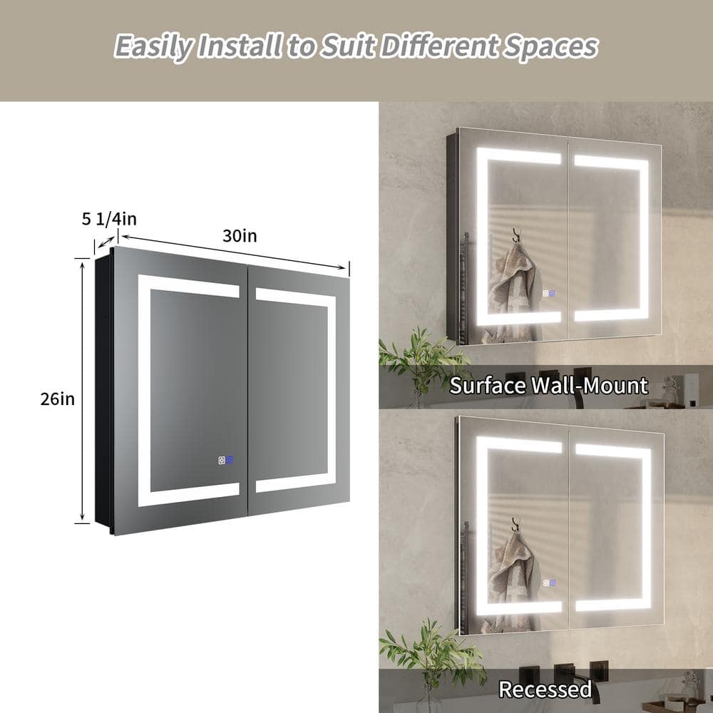 30x26" Aluminum LED Medicine Cabinet with Defogger