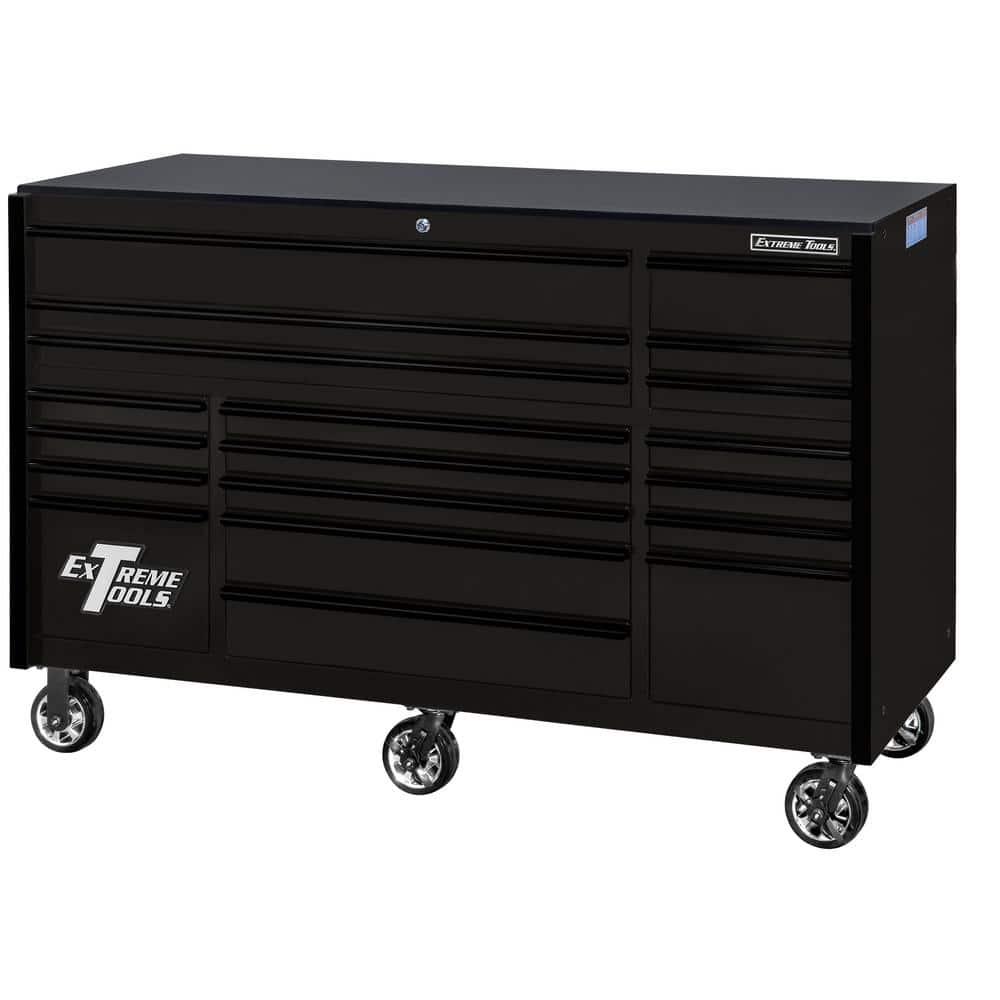 Extreme Tools RX Series 72 in. W x 25 in. D 19-Drawer Matte Black Rolling Tool Cabinet with 150 lbs. Slides and Black Drawer Pulls
