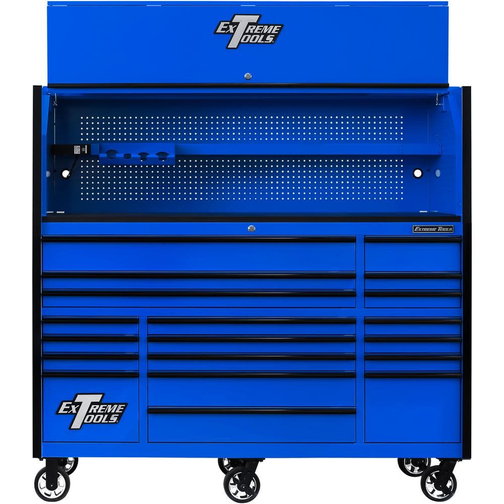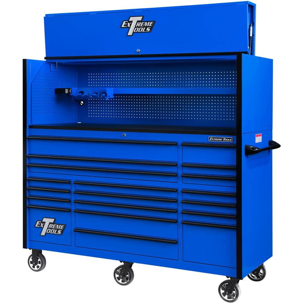 Extreme Tools RX Series Professional 72 in. W x 25 in. D Hutch and 19-Drawer Roller Cabinet Combo in Blue with Black Drawer Pulls