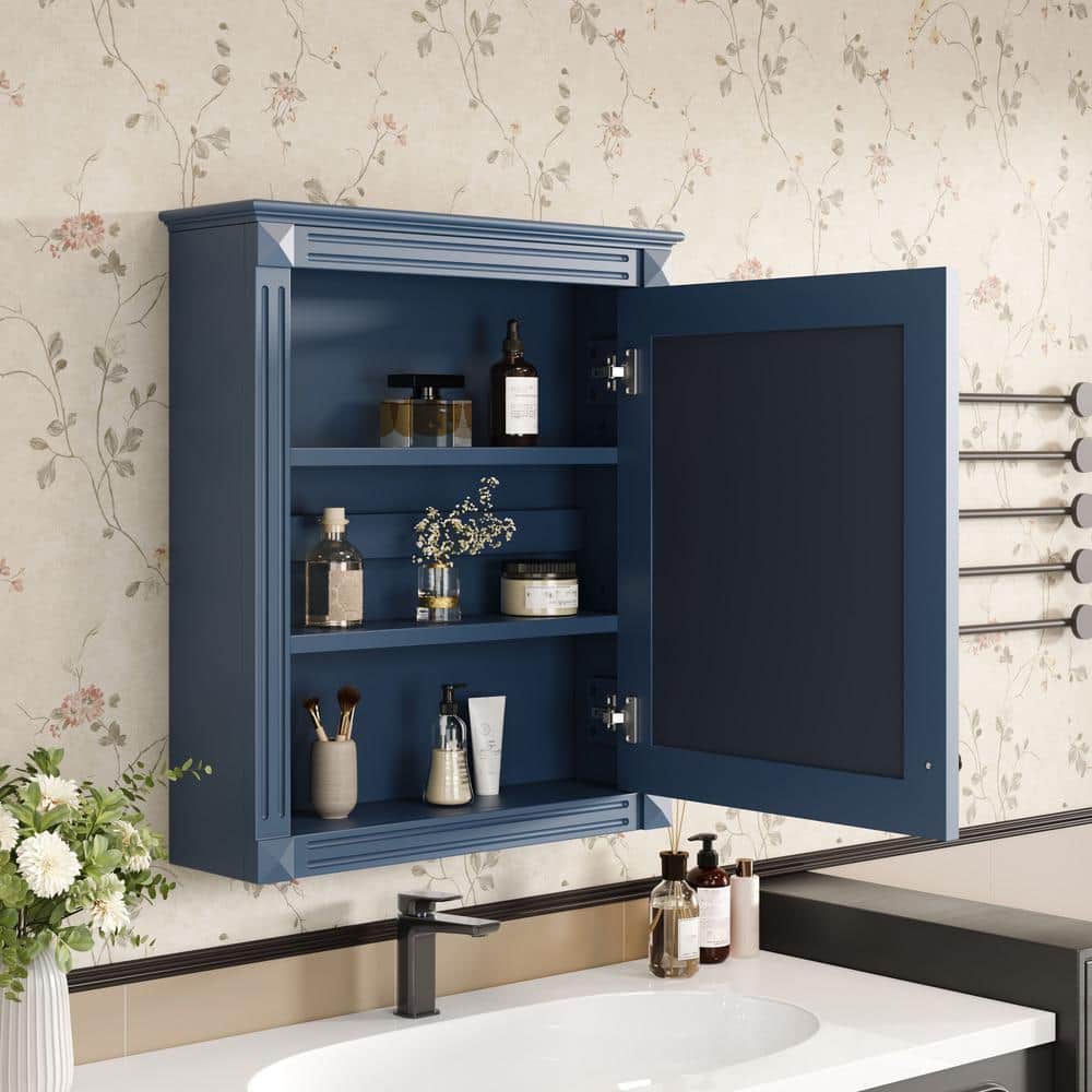 Enhance your bathroom with the FAMYYT 24x28 inch Blue Wooden Medicine Cabinet. Featuring a stylish mirror and adjustable shelving, this moisture-resistant cabinet effortlessly combines functionality with elegant design. Perfect for organizing your essentials in any small space.