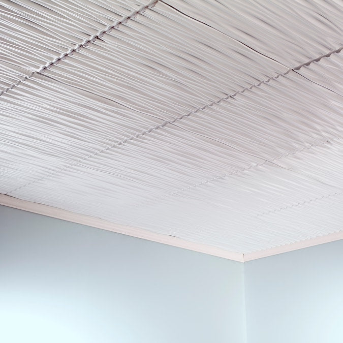 Transform your ceilings with the Fasade Dunes Horizontal Matte White PVC Surface-Mount Ceiling Tiles. These durable and water-resistant panels offer a quick, DIY-friendly installation, making them perfect for a swift decor update. With their authentic tin ceiling appearance, they bring classic elegance to any space.