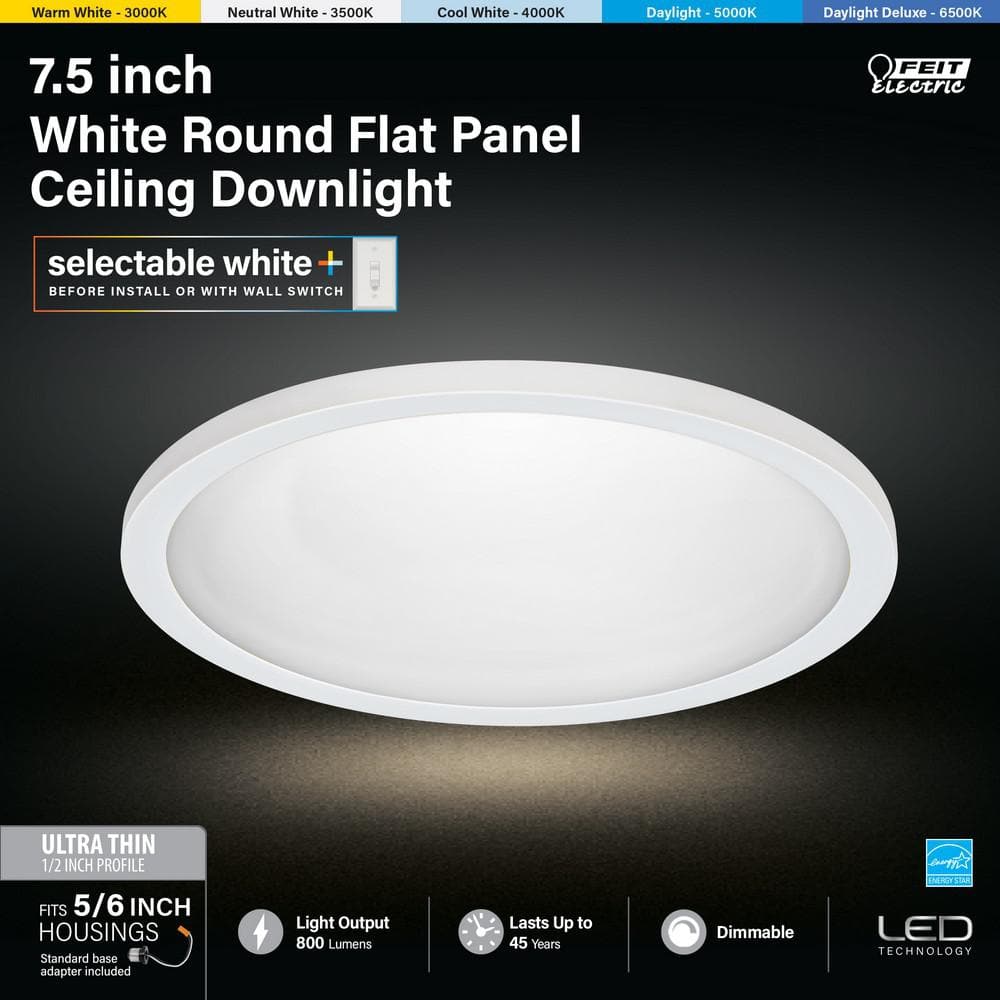 Feit Electric 10.5-Watt Integrated LED Flush Mount 7.5 in. White Round Dimmable Flat Panel Ceiling with Color Change 5CCT