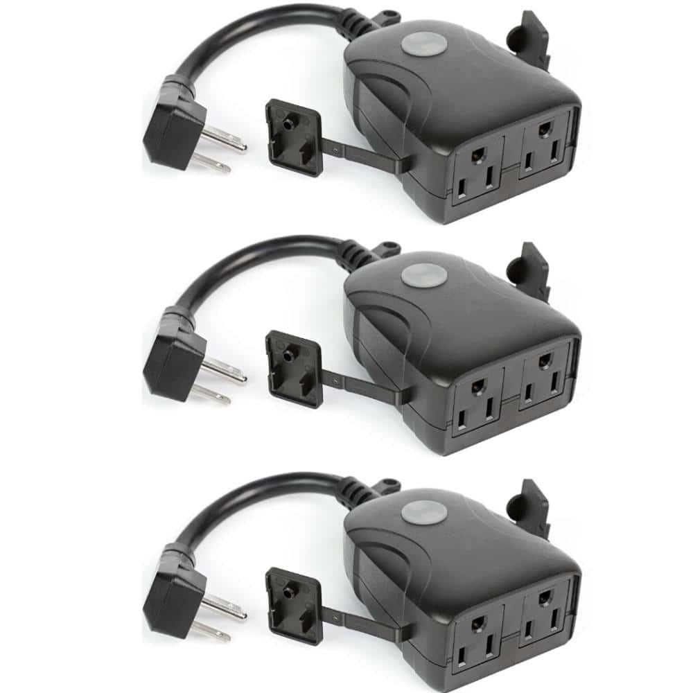 Feit Electric 15 Amp Outdoor Alexa/Google Assistant Compatible Plug -In Smart Wi-Fi Dual Outlet Wall Plug, No Hub Required (3-Pack)