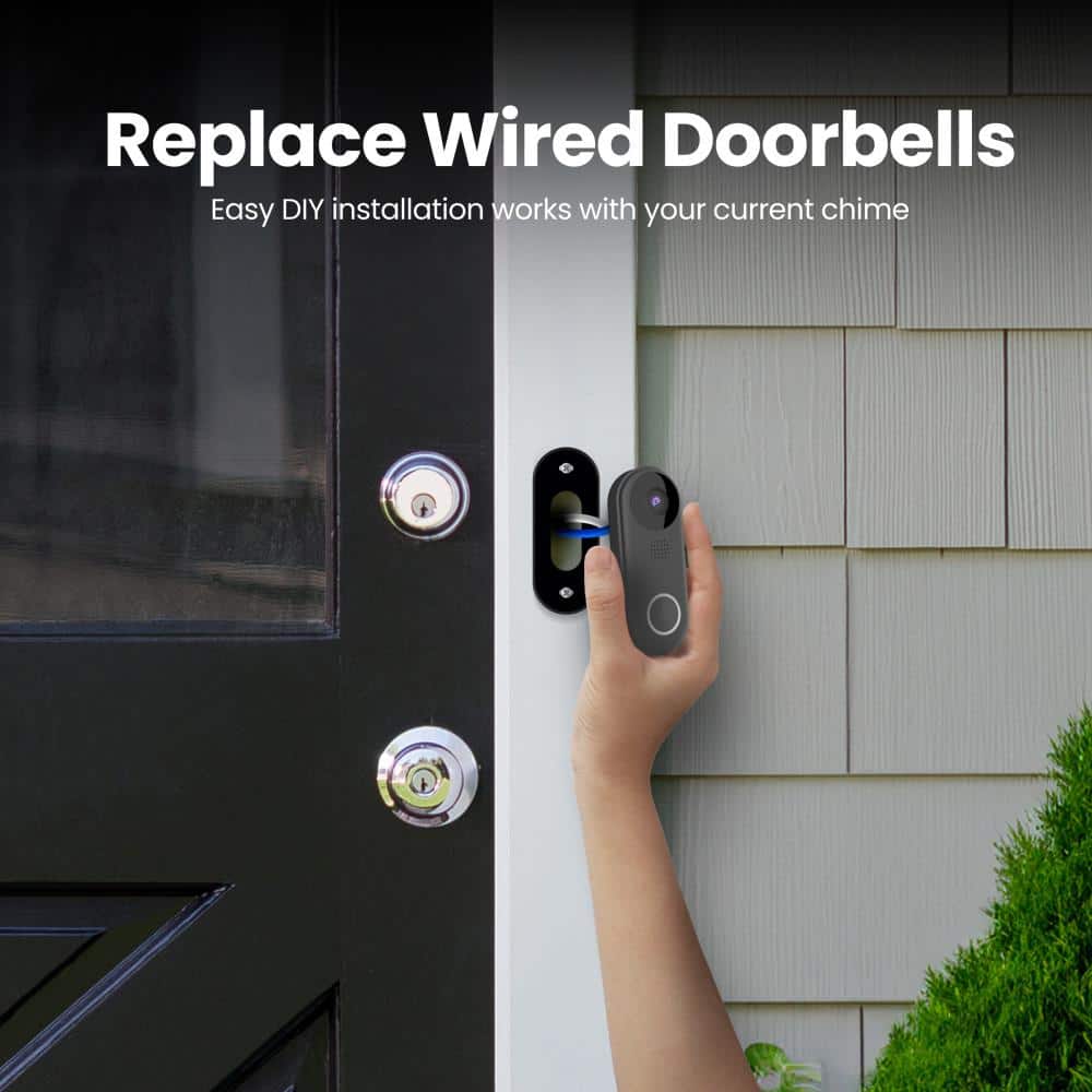 A: The doorbell camera can be hardwired to your existing doorbell wiring or connected wirelessly via the Feit Electric CHIME/DOOR/SMART. It connects to your home Wi-Fi network easily through the Feit Electric app.
