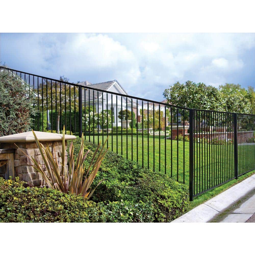 First Alert Pro Series 3 ft. H x 8 ft. W Black Galvanized Steel 2-Rail Fence Panel