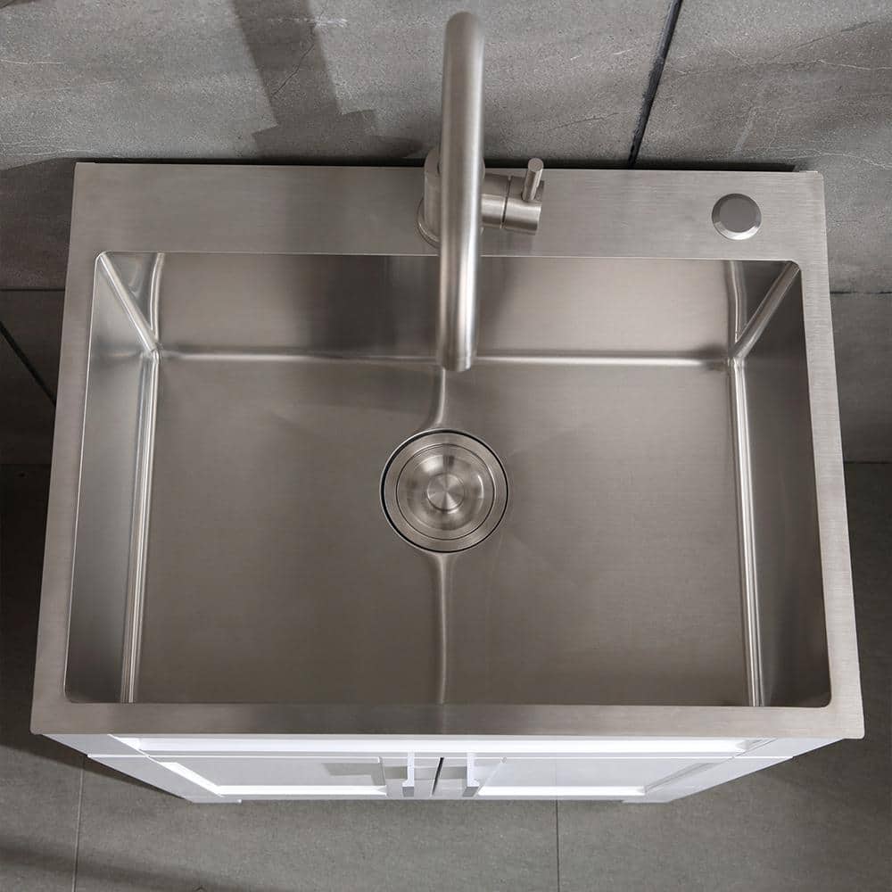 The Flynama 24-Inch Drop-In/Undermount Sink is expertly crafted from durable stainless steel, ensuring longevity and minimal wear. Complete with a high-performance faucet and drain, this utility sink is perfect for professional and DIY use. Silent pads enhance the experience by reducing noise, making it an ideal choice for any modern workspace.