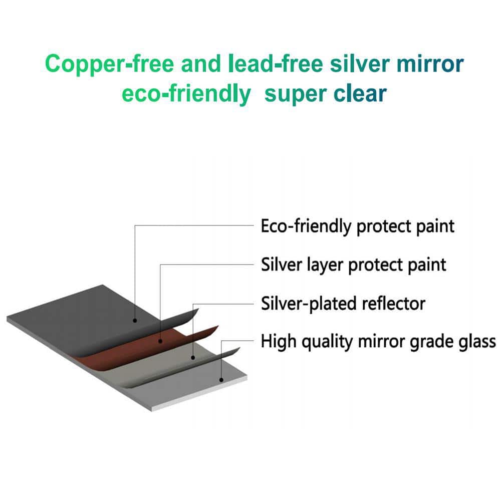 Copper-Free Silver Mirror: Offers an elegant, eco-friendly reflection with a beveled edge.