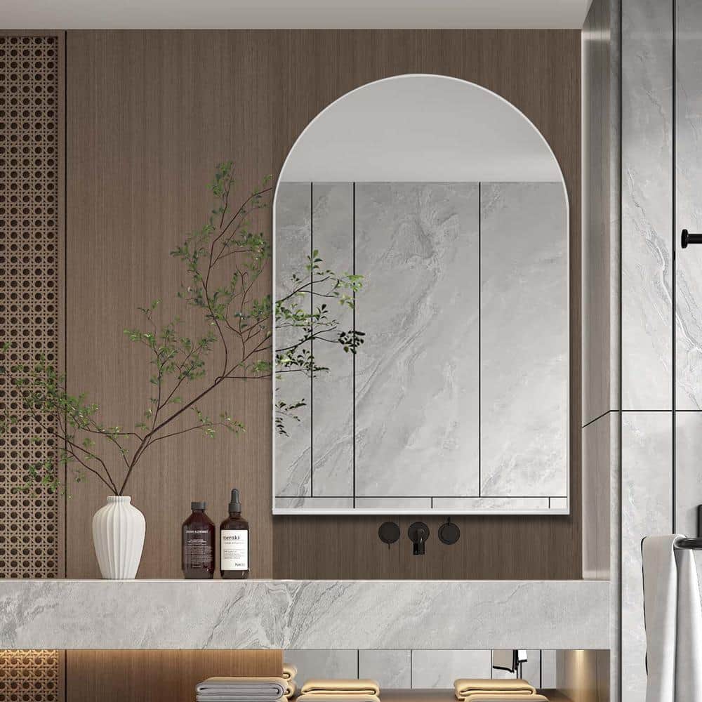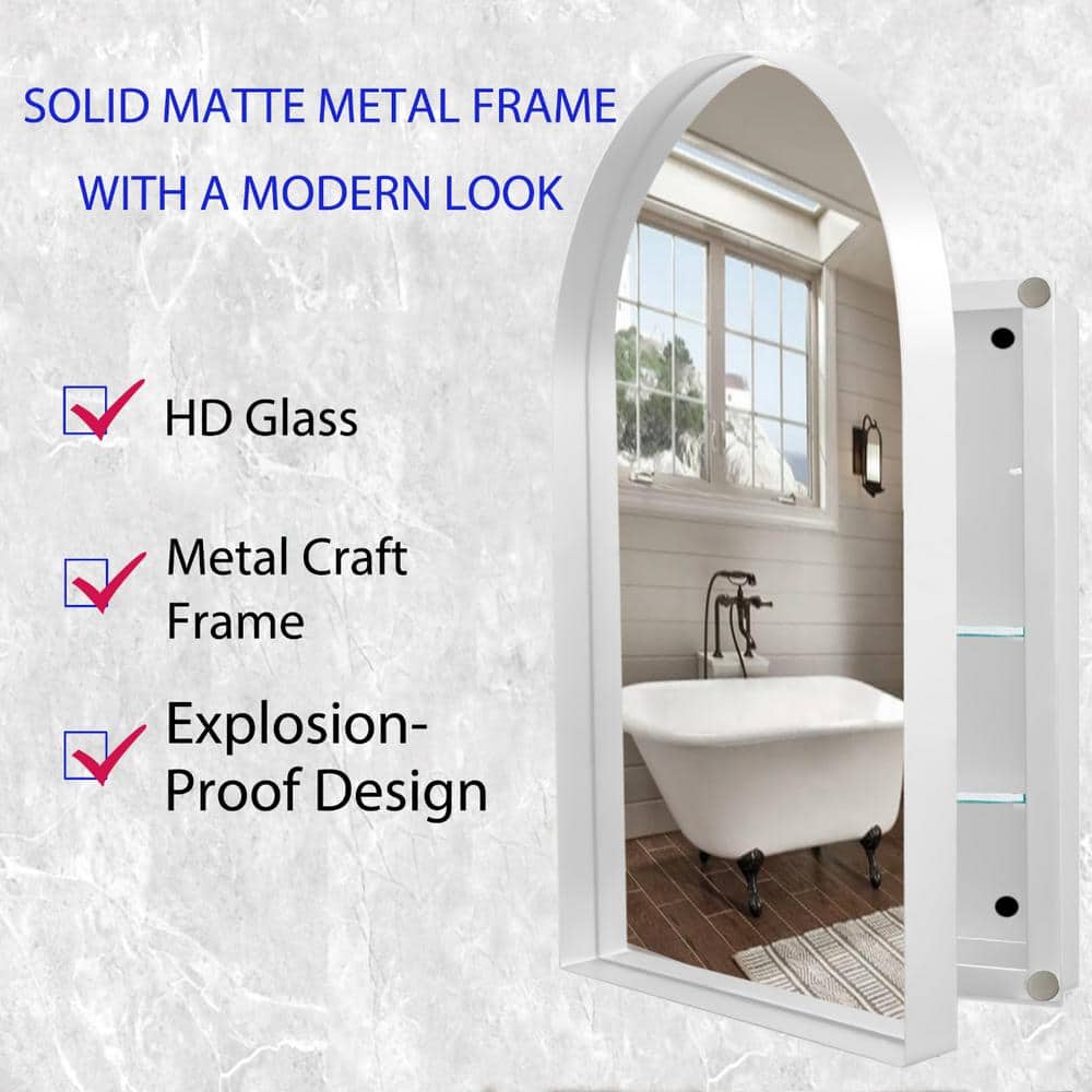 Elevate your bathroom space with the FORCLOVER 24" x 36" Arched Medicine Cabinet. Its elegant, durable metal frame and humidity-resistant features make it perfect for any modern bathroom. Equipped with adjustable tempered glass shelves and flexible mounting options, it's a stylish yet practical addition to organize your essentials.