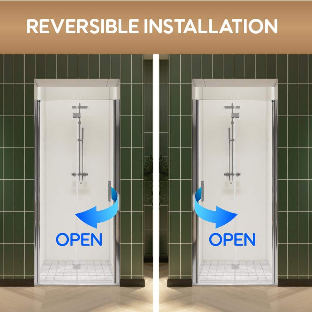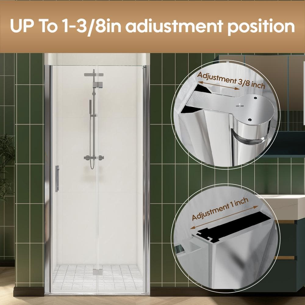 A: The shower door is designed for straightforward installation with adjustable features to accommodate slight width variations, ensuring a precise fit in any standard alcove shower space.