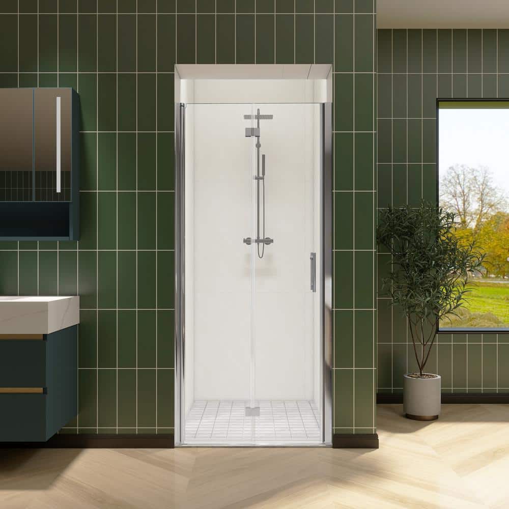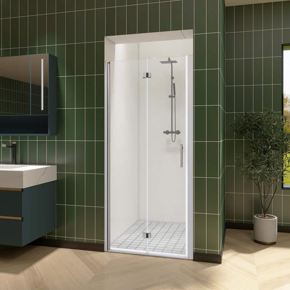 Transform your bathroom into a modern oasis with the sleek FORCLOVER Bi-Fold Frameless Shower Door. Its clear tempered glass and lustrous chrome finish exudes a minimalist elegance, complementing both contemporary and classic designs. The bi-fold system ensures efficient use of space, making it a perfect fit for compact areas, while the resilient glass and hinges offer a visually stunning and functional enclosure. Redefine luxury by integrating this door into your shower area to enhance your daily rituals and bring sophisticated ease to your lifestyle.