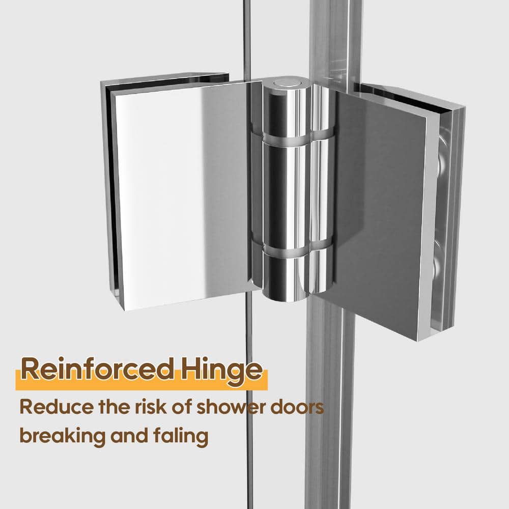 The FORCLOVER Bi-Fold Frameless Shower Door combines sleek design with modern function, featuring clear tempered glass and chrome-plated hinges. Perfect for maximizing space in smaller bathrooms, this door offers easy cleaning and a safe, leak-proof design for a seamless shower experience.