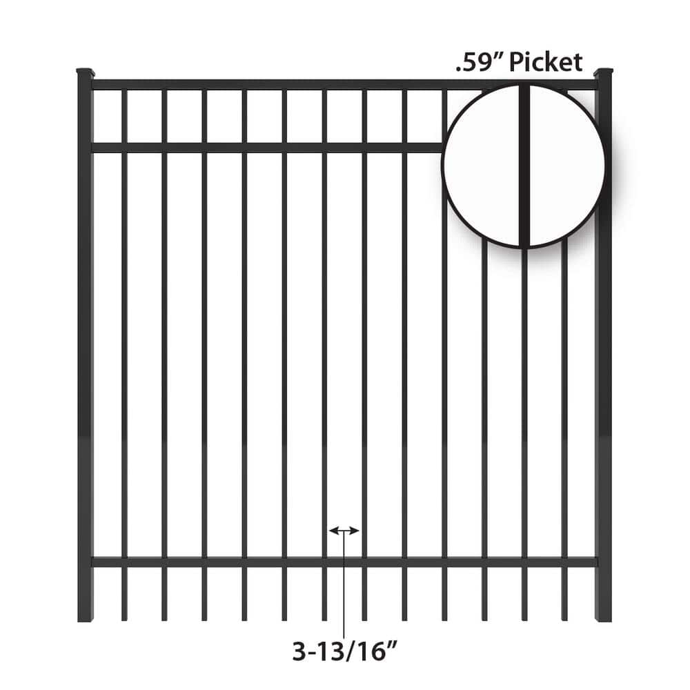 The FORGERIGHT Vinings Fence Gate is a perfect blend of style and functionality for your fencing needs. This 5 ft. W x 5 ft. H black aluminum gate comes pre-assembled, ensuring an easy installation process. Featuring a rust-resistant powder-coated finish, it promises longevity and durability, making it an ideal choice for outdoor installations.