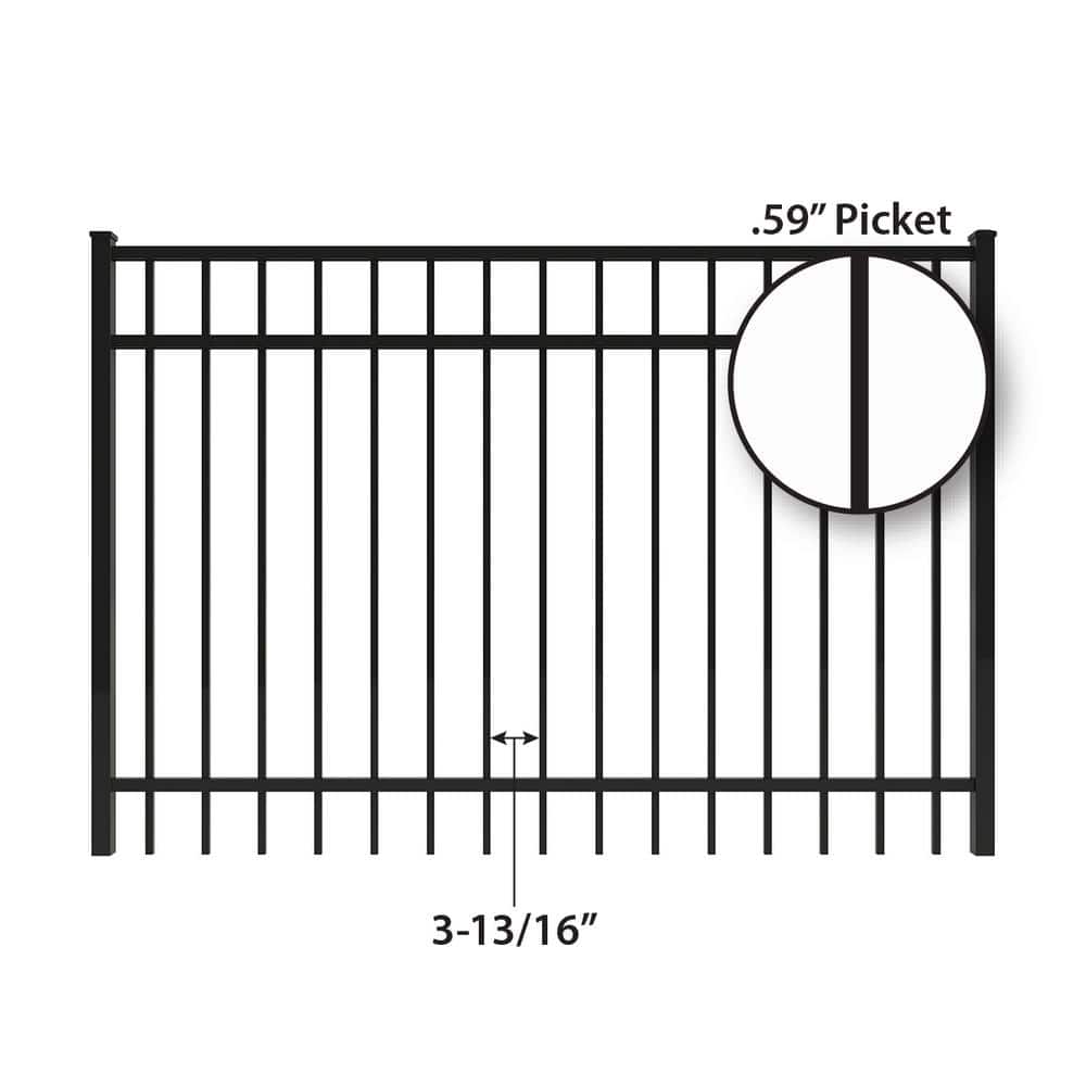 The FORGERIGHT Vinings Black Aluminum Fence Gate offers a sleek and durable solution for securing your outdoor spaces. Pre-assembled for quick installation, this 4ft x 6ft gate is designed with a powder-coated finish for long-lasting rust resistance, making it perfect for professionals and DIYers alike.