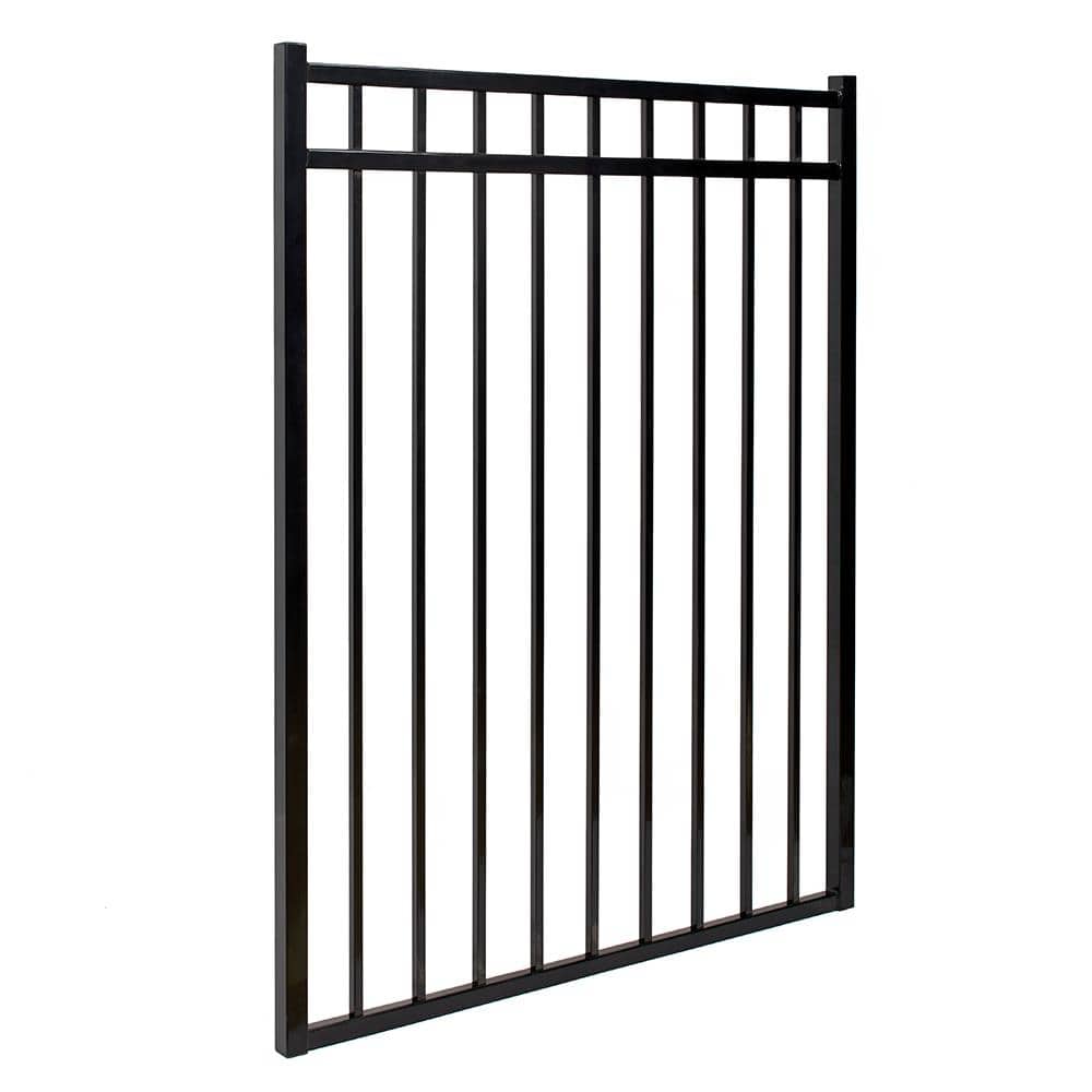 FORTRESS Athens Flat Top and Bottom Design 4 ft. W x 4 ft. H Gloss Black Aluminum Fence Gate