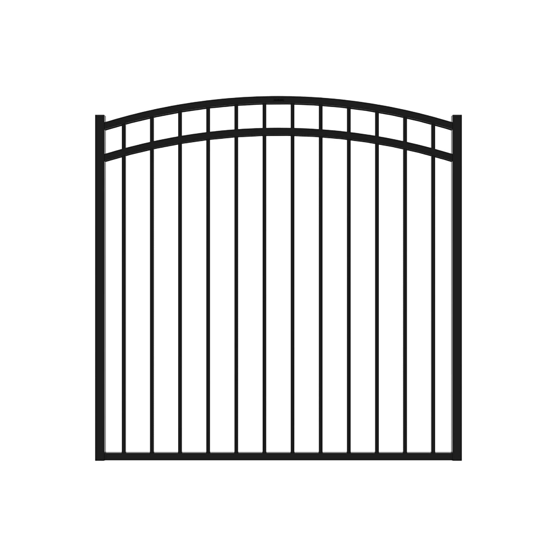 Like a black-tie accessory to your landscape, this gloss black steel fence gate effortlessly frames your garden pathways with an elegant touch. Its clean, flat-top design adds a sense of grandeur while mingling seamlessly with varied exteriors. Think about flanking it with climbing roses or illuminating with soft garden lighting for an inviting aesthetic. With its assured durability, this piece isn't just an enhancement; it's a staple of refined, carefree outdoor living.