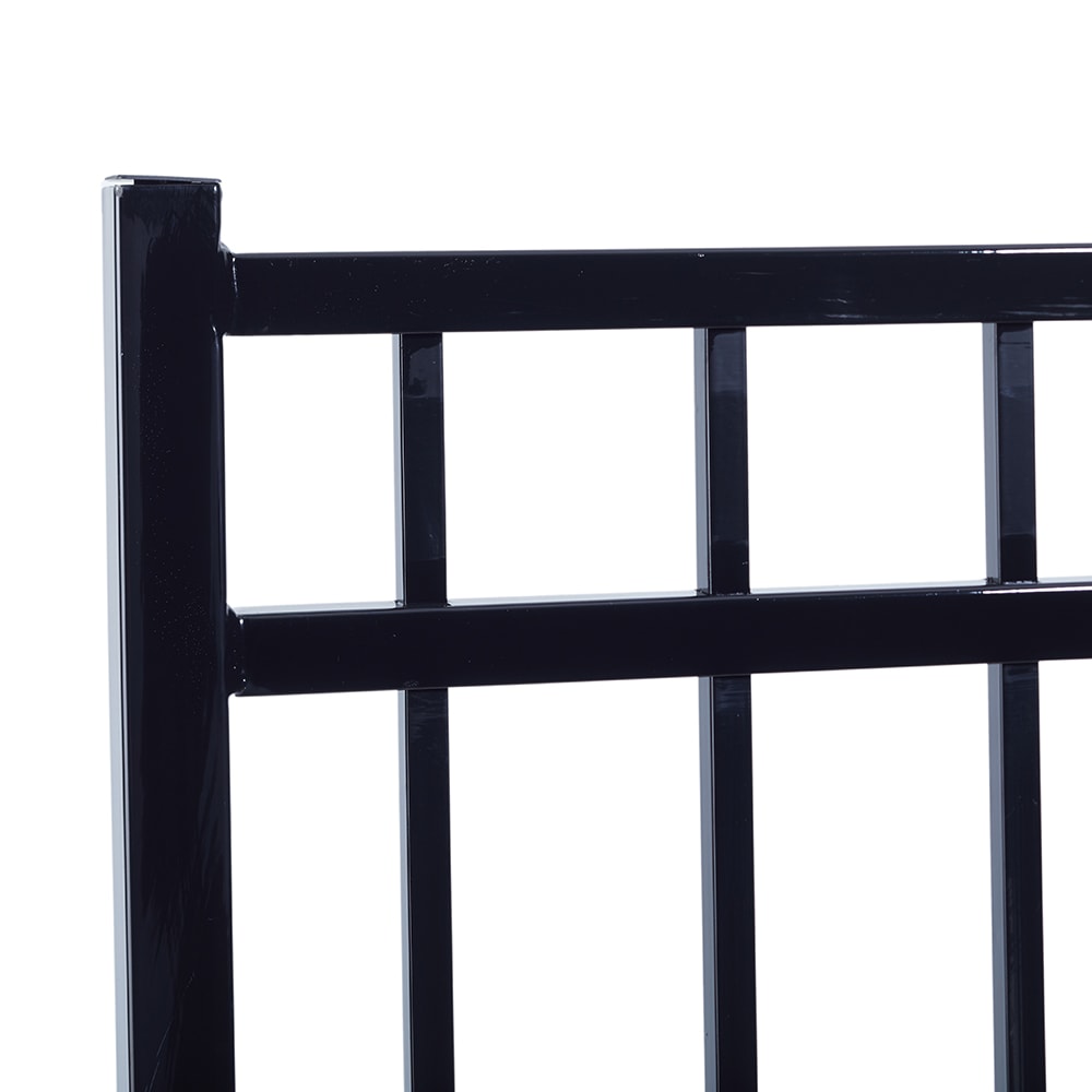 Imagine transforming your outdoor sanctuary with the Versai Gloss Black Fence Gate. Its flat-top design exudes a classic sophistication that whispers luxury. Install this gate to frame an inviting passageway to your garden or pool. This is more than just a gate; it's a statement piece that harmonizes safety with style, ensuring your spaces are not only secure but stunningly refined as well.