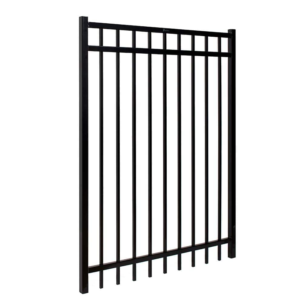FORTRESS Versai 4 ft. W x 5 ft. H Gloss Black Steel Flat Top Design Fence Gate