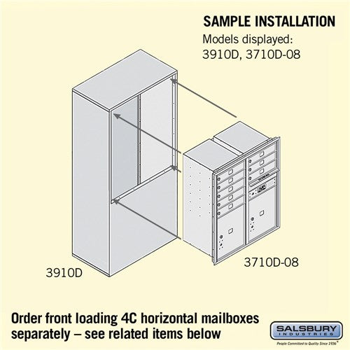Compatibility Designed to mount Salsbury 3700 Series front loading 4C standard and custom horizontal mailboxes