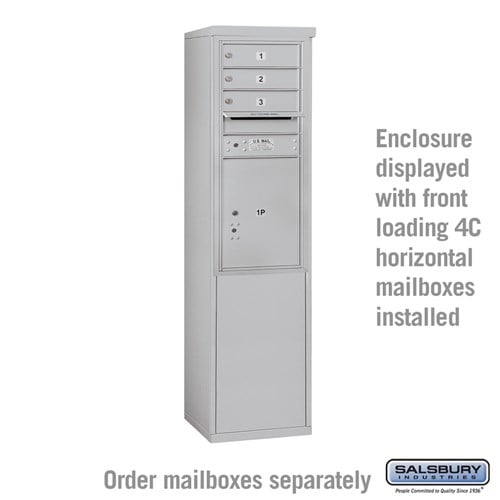 A: This enclosure is designed to mount Salsbury 3700 Series front loading 4C standard and custom horizontal mailboxes.