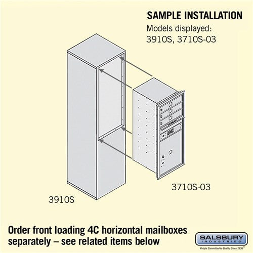 Compatibility Designed to mount Salsbury 3700 Series front loading 4C standard and custom horizontal mailboxes