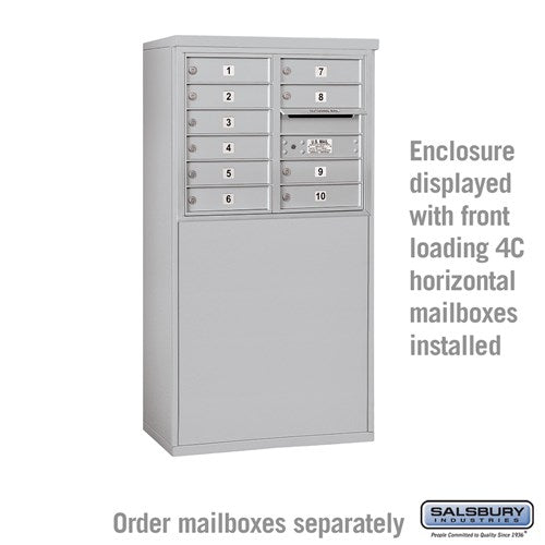 A: This enclosure is designed to mount Salsbury 3700 Series front loading 4C standard and custom horizontal mailboxes.