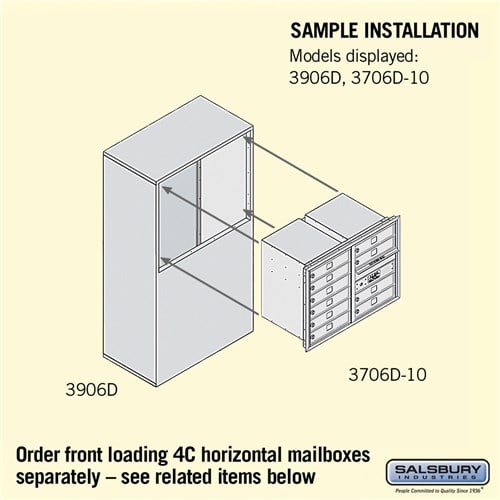 | Compatibility | Designed to mount Salsbury 3700 Series front loading 4C standard and custom horizontal mailboxes |